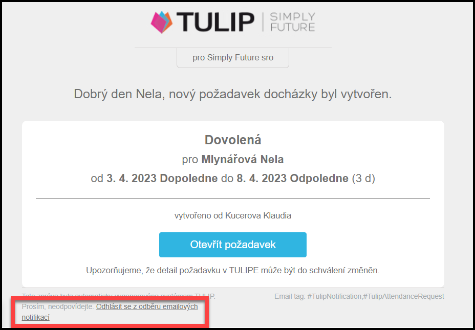 Klikněte na možnost Odhlásit se z odběru e-mailových notifikací.