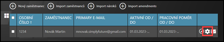 Vyberte zaměstnance – Klikněte na ikonu kolečka.
