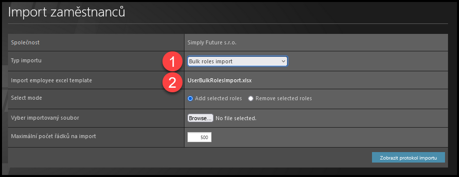 Modré řádky vás informují – například o tom, že uživatel již danou roli má – můžete je však stále nahrát.