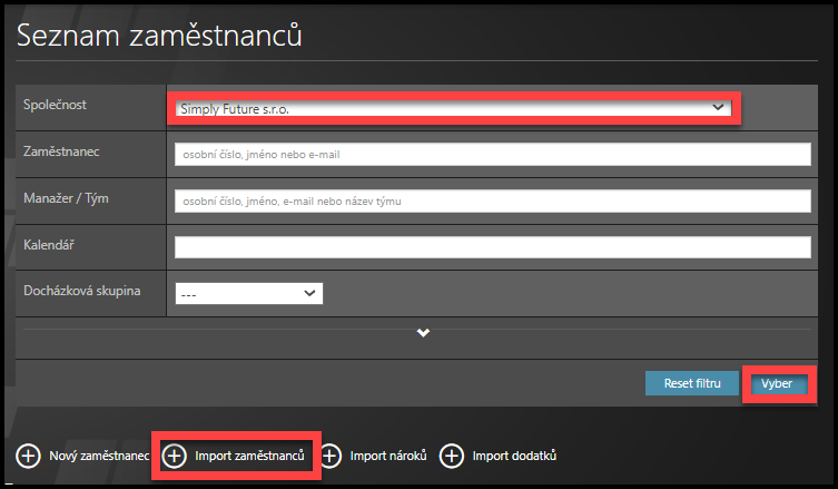 - Nahrajte zbytek zaměstnanců v tabulce do systému – klikněte na tlačítko Importovat nyní.