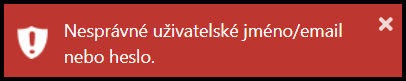 Upozorňujeme, že pokud jste se třikrát neúspěšně pokusili přihlásit pomocí nesprávného uživatelského jména nebo hesla, bude váš účet na 30 minut zablokován, a to i v případě, že nyní používáte správné uživatelské jméno, e-mail nebo heslo.