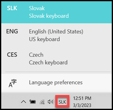 Zkontrolujte nastavení jazyka klávesnice. Klikněte na jazykovou zkratku v pravém dolním rohu obrazovky. Některá písmena a číslice použité v hesle se mohou změnit v závislosti na nastavení jazyka.