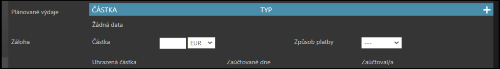 Toto je částka peněz, kterou dostanete před pracovní cestou. Pokud si přejete dostat zálohu, musíte vyplnit tato dvě pole: