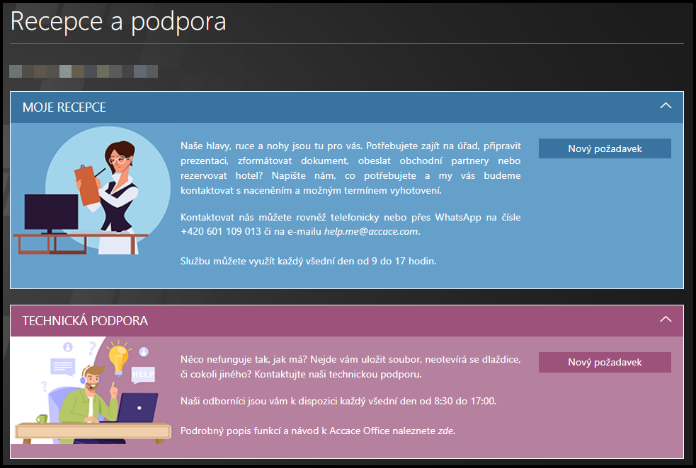 ✔ Služba Recepce a podpora umožňuje využít virtuální asistenci.