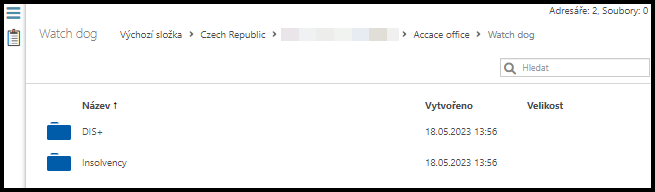• Monitoruje obchodní partnery, popř. další subjekty v insolvenčním rejstříku, které uvedete v této složce v seznamu sledovaných subjektů.