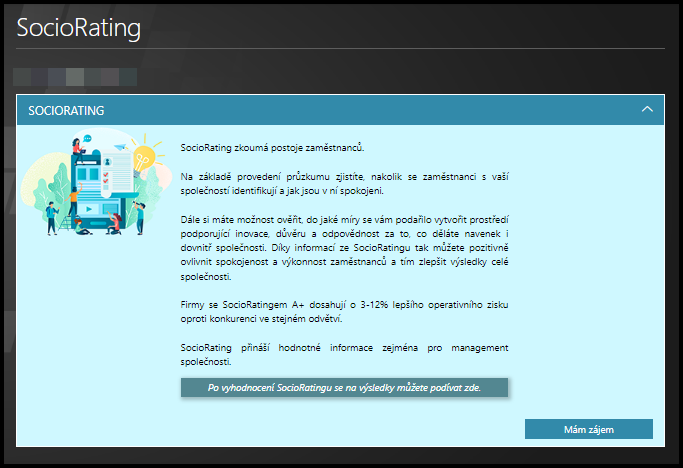 Vytvořte poptávku pro aplikaci SocioRatingu – hodnocení atmosféry, analýzu a měření angažovanosti zaměstnanců a jiné – ve vaší společnosti.