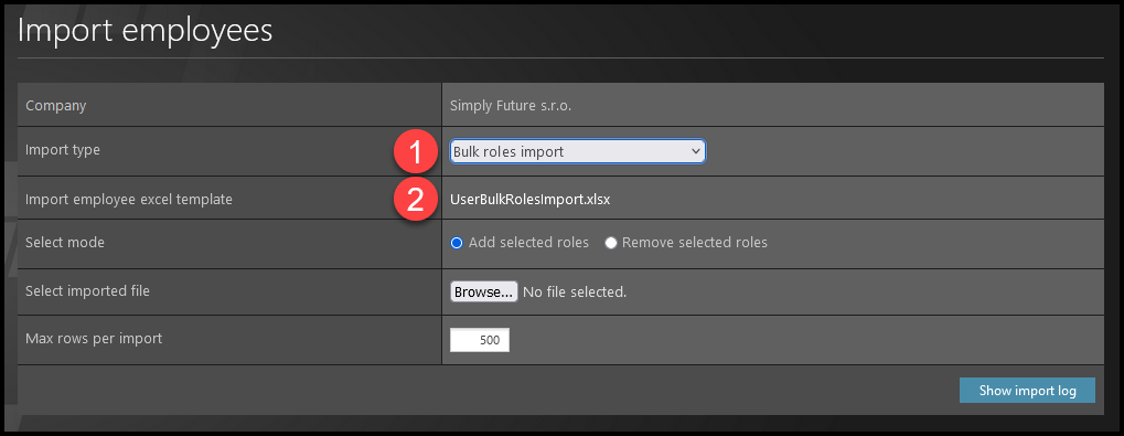 - Select bulk roles import.