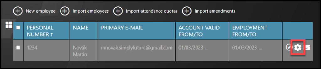 Select the employee – Click on the wheel icon.