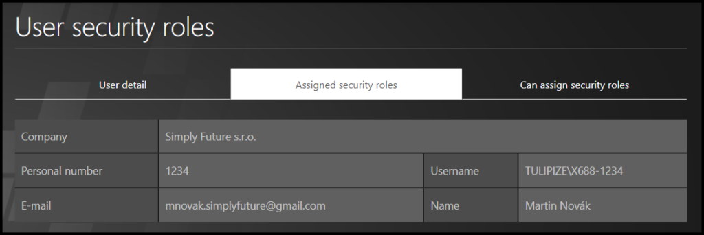 Select the second tab named Assigned security roles. Here you can add roles and access rights to employee.