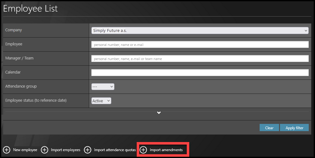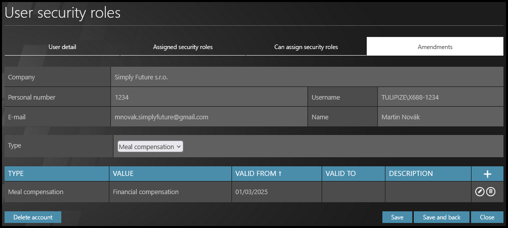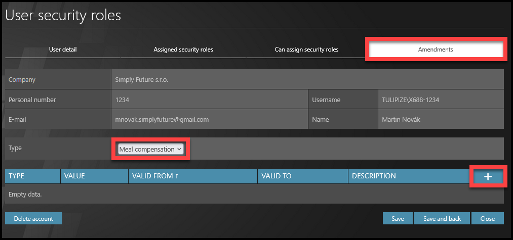 - Insert the Personal number of the employee and fill in the “Amendment type”, “Valid from” and “Value”. You can insert multiple amendments at once for one employee or for multiple employees in that way.