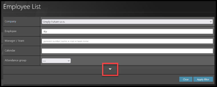 You can choose the Company and filters if needed. There are advanced filters hidden – click on the small arrow to display them. Then, click Apply filter.