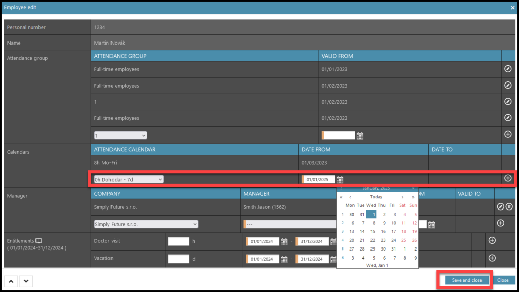 For existing employees: individually (in this manual) & in bulk via import of changes. Insert the desired calendar/calendar code and save the change.