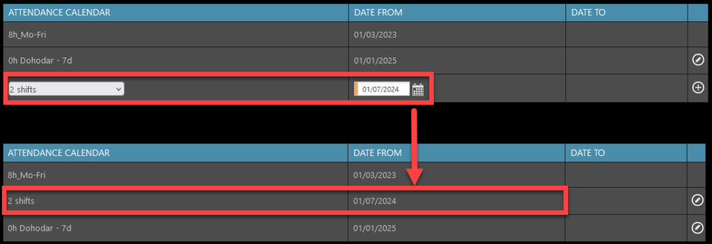 If you change calendar this way, please be aware all following calendars will be deleted for the employee.