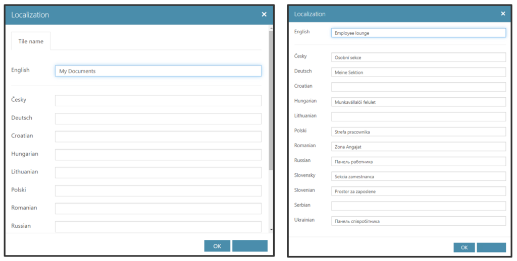 - Administrator can see and be able to change names and location of all tiles for everyone in the company.