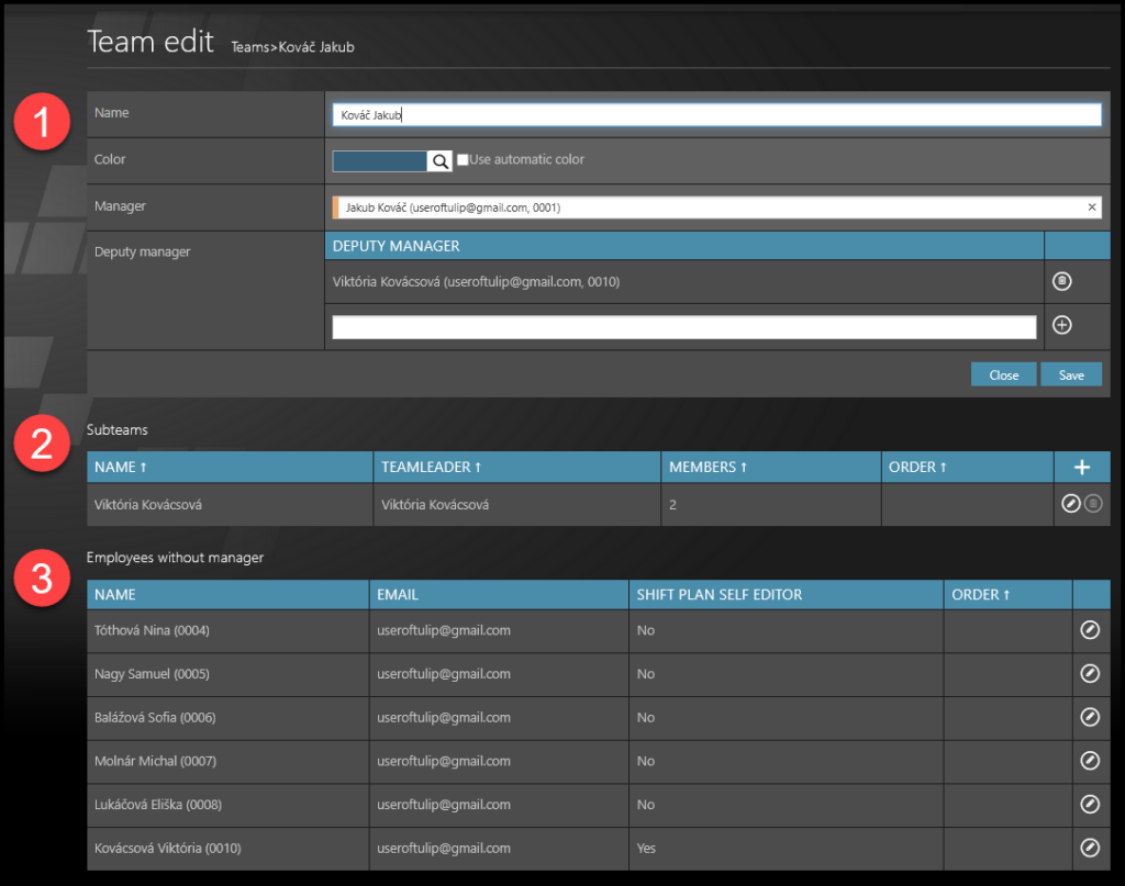 Teams hierarchy allows assigned persons (managers, teamleaders, deputy managers) to manage and overlook scheduled working time of subordinates. Thefunctionality on the basic level is the same as assigning managers for employees – that means, for approving employee’s attendance requests.