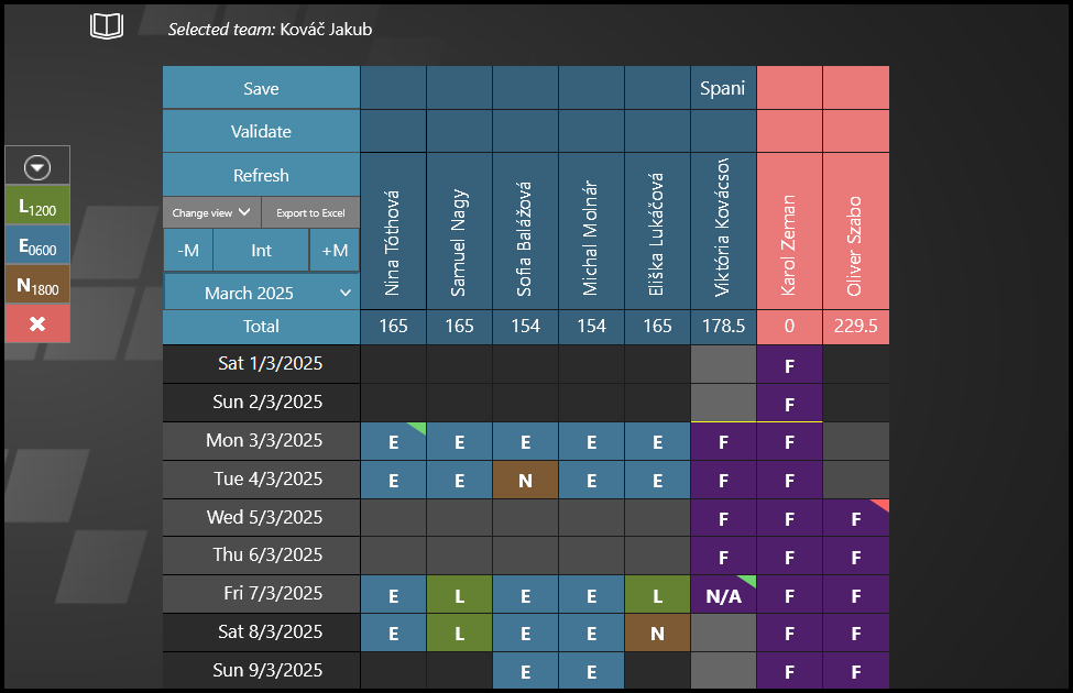 - Color used in Shift plan