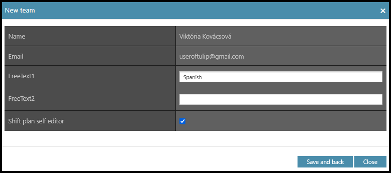 - Shift plan self editor – If the checkbox is ticked, the person will be able to change own attendance shifts.