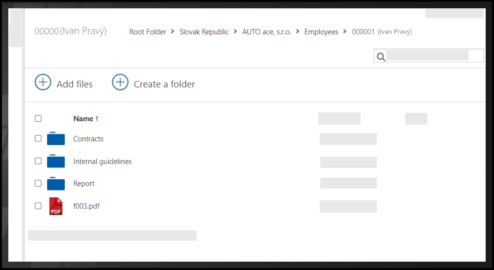 It is a specific folder structure in File Manager used for example to share and save contracts, ID photos, or updating changes in those documents. The main purpose of this functionality is to share documents between employees and a dedicated person, usually an HR employee.
