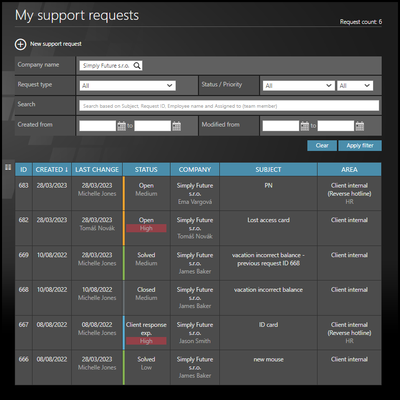You can also check the priority of requests. Requests with high priority are highlighted with a red mark in the list of requests. The default priority status for all requests is Medium.