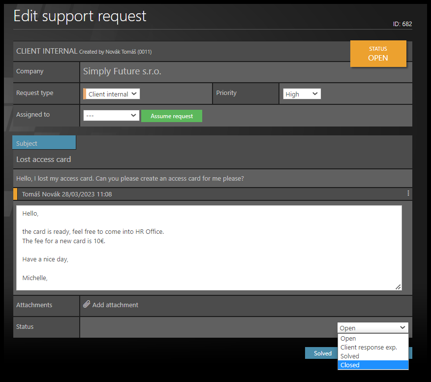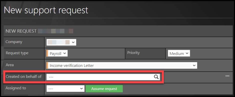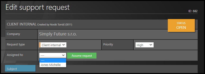 Assigned to – Select the operator who will solve the issue. If you click Assume request, you will be the person responsible for solving the issue.
