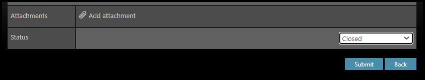 - Resolved– click on this field and the request will be marked as processed. After 14 days with no further response it will automatically close. You can also click the blue Resolved-Close button down the page.