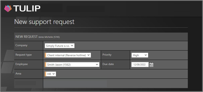 Companies that use Hotline may also allow employees to contact TULIP support directly via a certain request type (IT-TULIP). Select this type if you have a technical problem with the system itself.