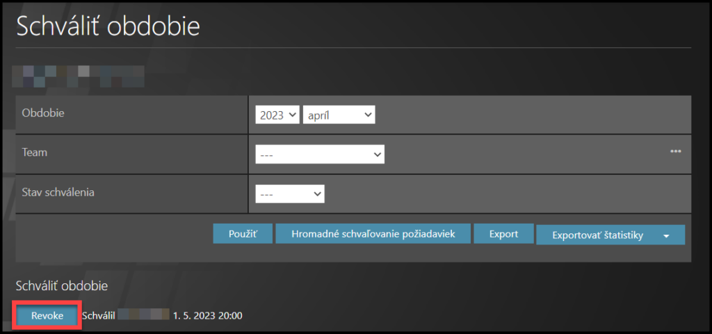 Poschválení VŠETKÝCH dochádzkových období zamestnancov sa ukáže nové tlačidlo na schválenie.