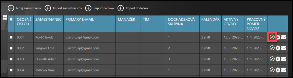 Vyberte zamestnanca – Kliknite na ikonu ceruzky.