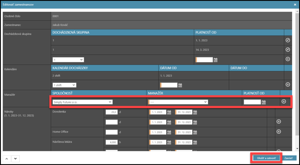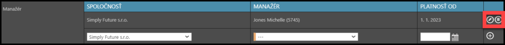 - Zmena údajov – kliknite na ikonu ceruzky. Vyberte iného manažéra, čím sa prepíšu staré údaje.