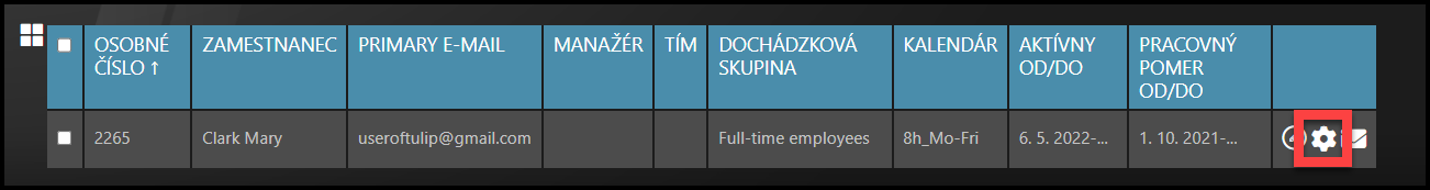 Vyberte zamestnanca – Kliknite na ikonu kolieska.