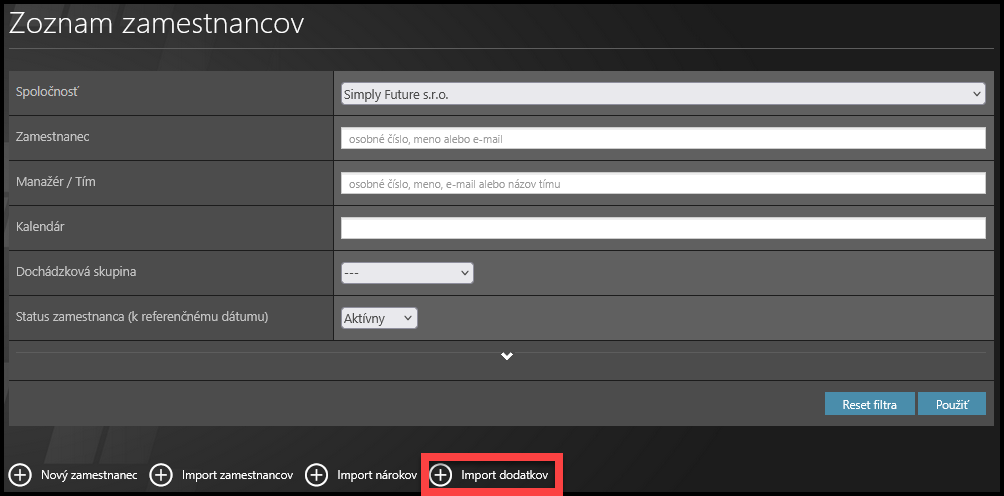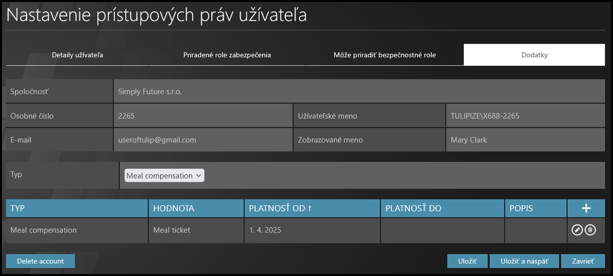 Upozornenie: zobrazené nastavenie TULIP-u vždy závisí od konkrétnych požiadaviek a nastavení prístupových práv vo vašej spoločnosti. Nie všetky spoločnosti využívajú túto funkcionalitu. Nastavenie závisí aj od legislatívy vo vašej krajine.