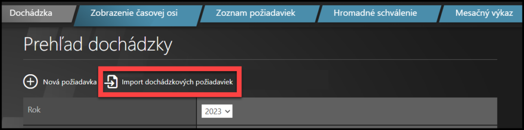 Manažéri alebo oddelenie ľudských zdrojov môžu v mene zamestnancov vytvárať žiadosti o dovolenku, žiadosti o home office, žiadosti o nemocenskú atď. V tejto príručke sa budeme venovať funkcii Import – umožňuje nahrať viacero žiadostí naraz pomocou súboru .xls (šablóna MS Excel).