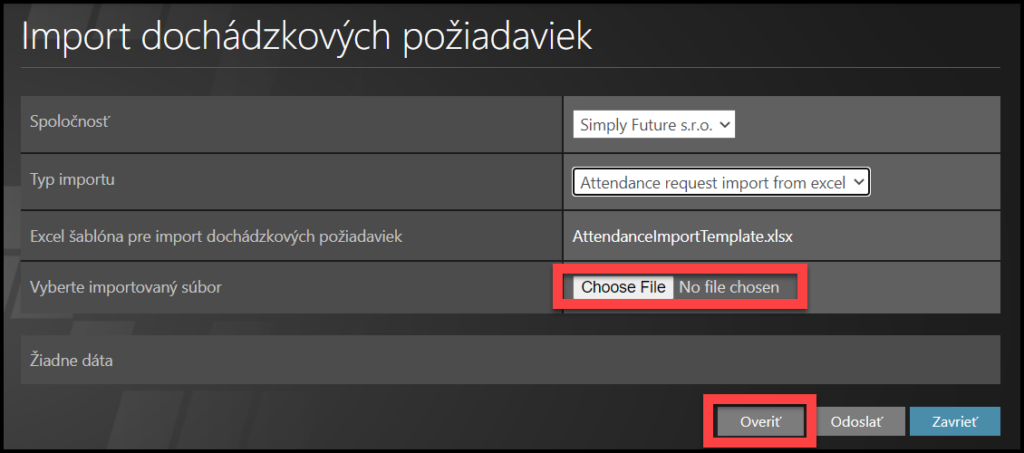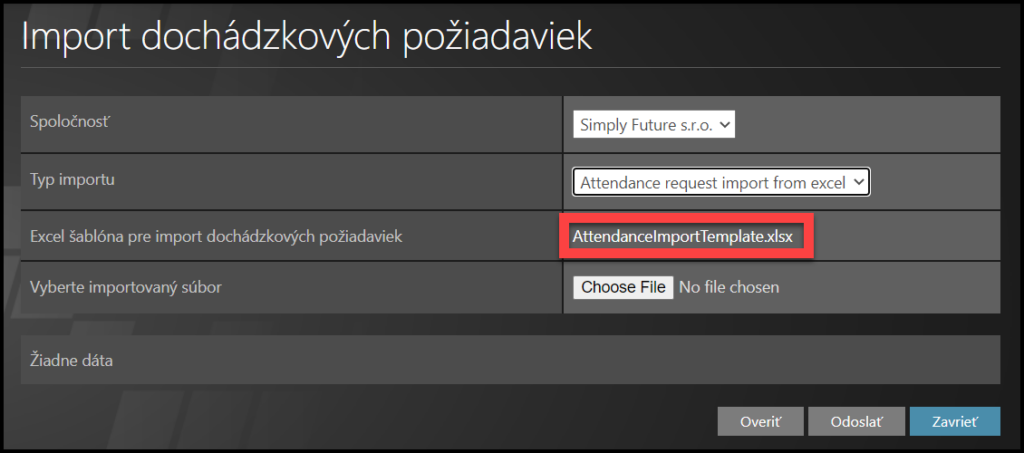 Kliknite na AttendanceImportTemplate.xlsx a stiahnite si šablónu.