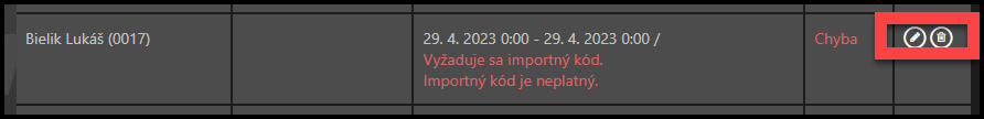 - Warning v oranžovej farbe – označuje chybu v importe. Pozrite si popis chyby. Požiadavky s týmto upozornením môžete importovať.