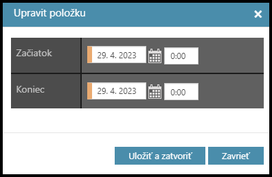 - End at 1st./2nd. halfday – Koniec v prvej / druhej polovici dňa – nezadávajte nič pre celodenné požiadavky.