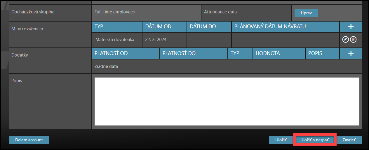 Kliknite na Uložiť a späť pre uloženie zmien a návrat späť do zoznamu zamestnancov.