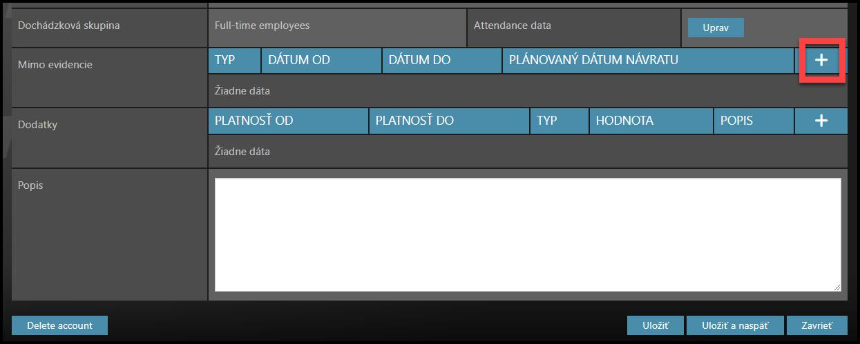 ❌ Zamestnanec nemá prístup k funkciám vlastnej Dochádzky.