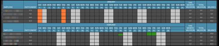 Niektoré spoločnosti používajú predvolený pohľad nielen na jeden, ale aj na jeden a pol roka. V takom prípade je možné vidieť a naplánovať cellú základnú aj prenesenú dovolenku v jednom zobrazení.
