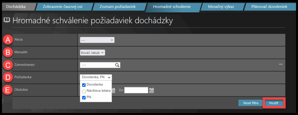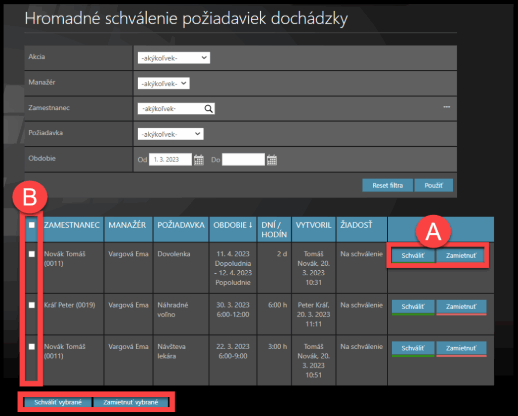 Manažér: Schvaľovanie dochádzkových požiadaviek