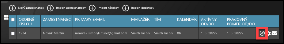Vyberte zamestnanca – Kliknite na ikonu ceruzky.