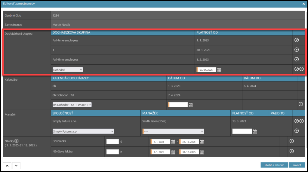 - individuálne – pridajte alebo zmeňte skupinu zamestnancov (v tomto manuáli)