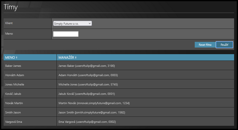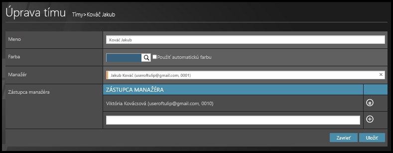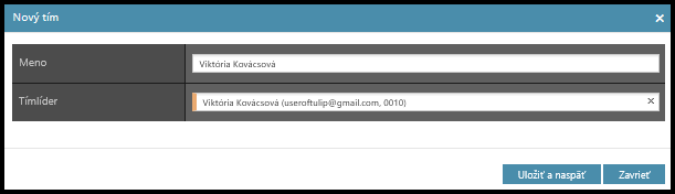 - Tímlíder – Vyberte meno.
