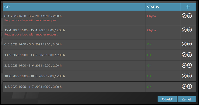 • Odstrániť požiadavku – kliknite na ikonu  koša.