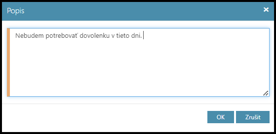 V prípade potreby pridajte komentár pre svojho manažéra. Kliknite na tlačidlo OK.