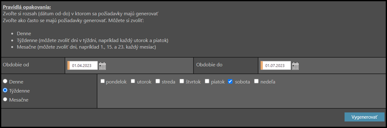 2. Ako vytvoriť hromadné požiadavky na viac dní