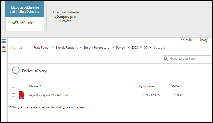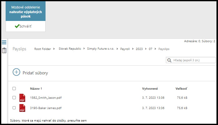 Ste presmerovaný do aktuálneho priečinka Payslips – Výplatné pásky. Cesta k tomuto priečinku je zobrazená na obrázku.