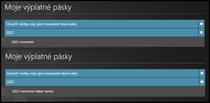 - ROK + MESIAC je predvolené zobrazenie a triedenie výplatných pások v TULIP-e. Aj súbory bez názvu sú zaradené do týchto zložiek a rovnako nazvané (napríklad 2022 november).