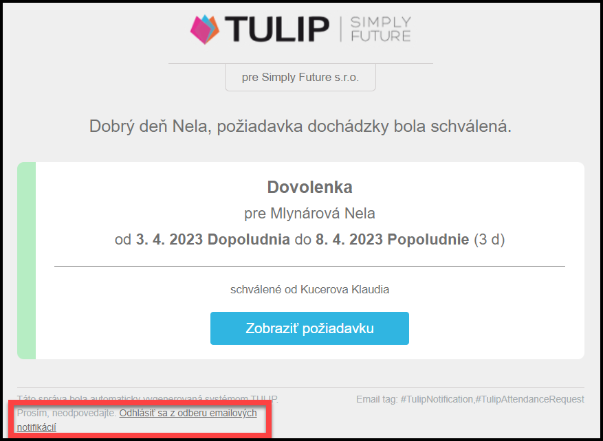 Používatelia majú možnosť spravovať vlastné oznámenia na základe individuálneho nastavenia ich TULIP účtu.