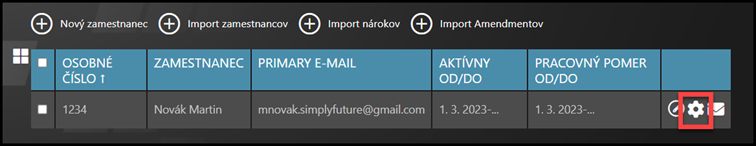 Vyberte zamestnanca – Kliknite na ikonu kolieska.