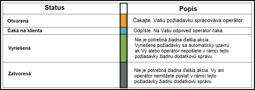 Existujú 4 statusy označené farbami, ktoré zobrazujú aktuálny stav požiadavky.